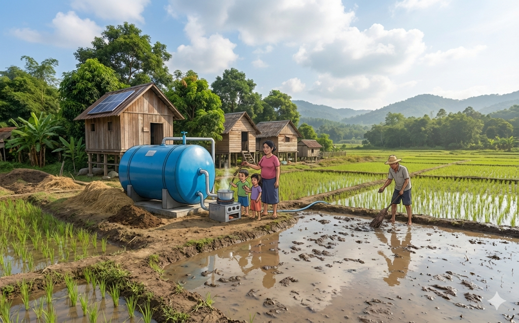- By-product: The residue (digestate) is used as a nitrogen-rich liquid fertilizer for rice paddies, closing the ecological loop.